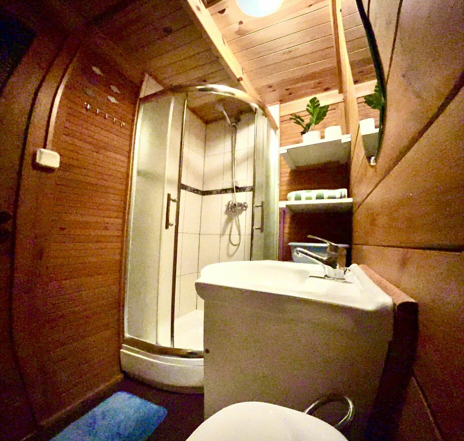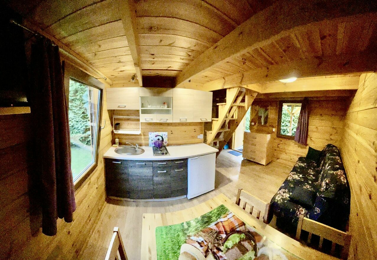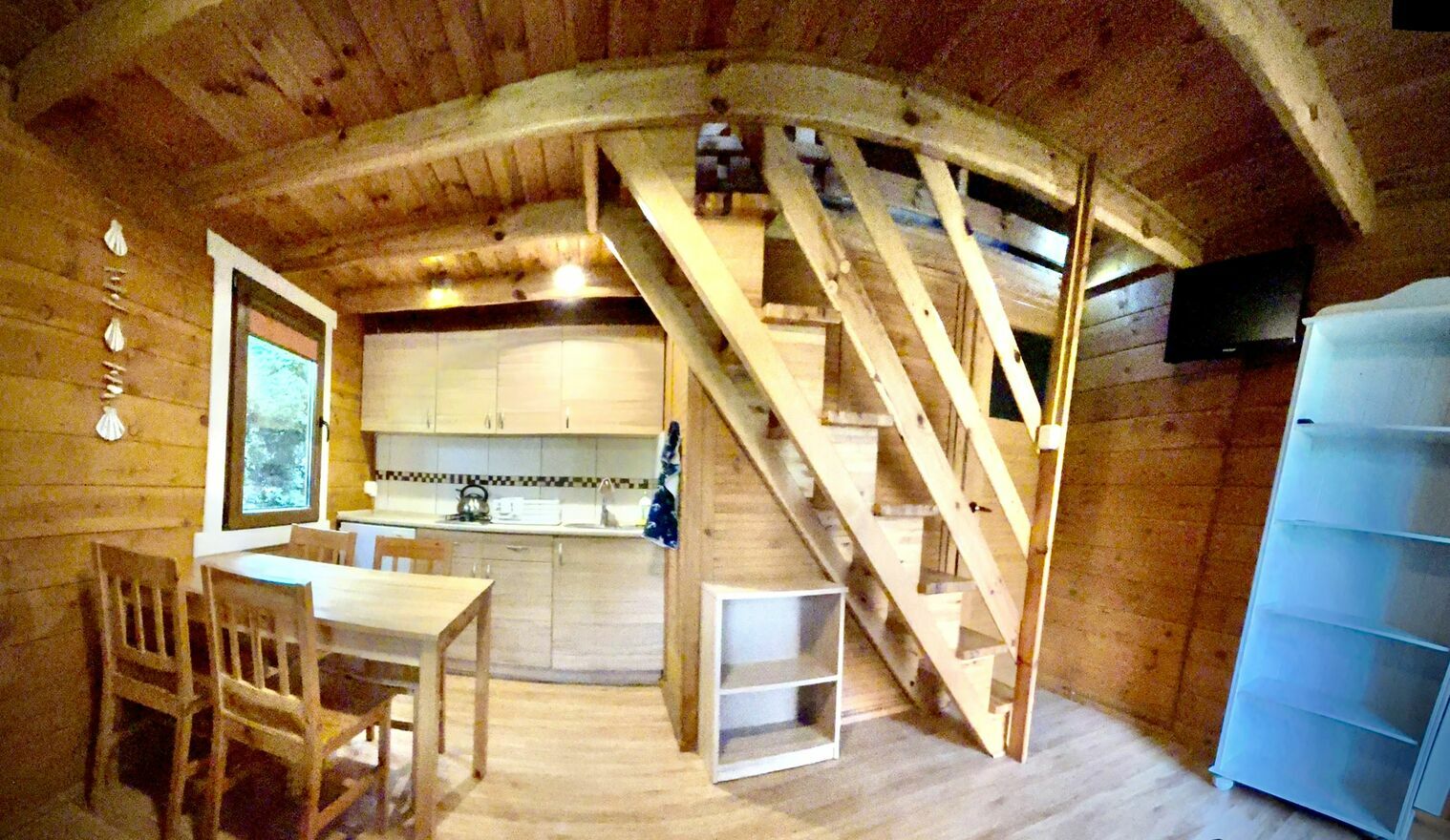 Domki mieszczą część wypoczynkową, kuchnię, jadalnię i łazienkę z prysznicem. Do dyspozycji Gości jest szafa, czajnik, radio, oraz telewizor z płaskim ekranem i dostępem do kanałów kablowych.